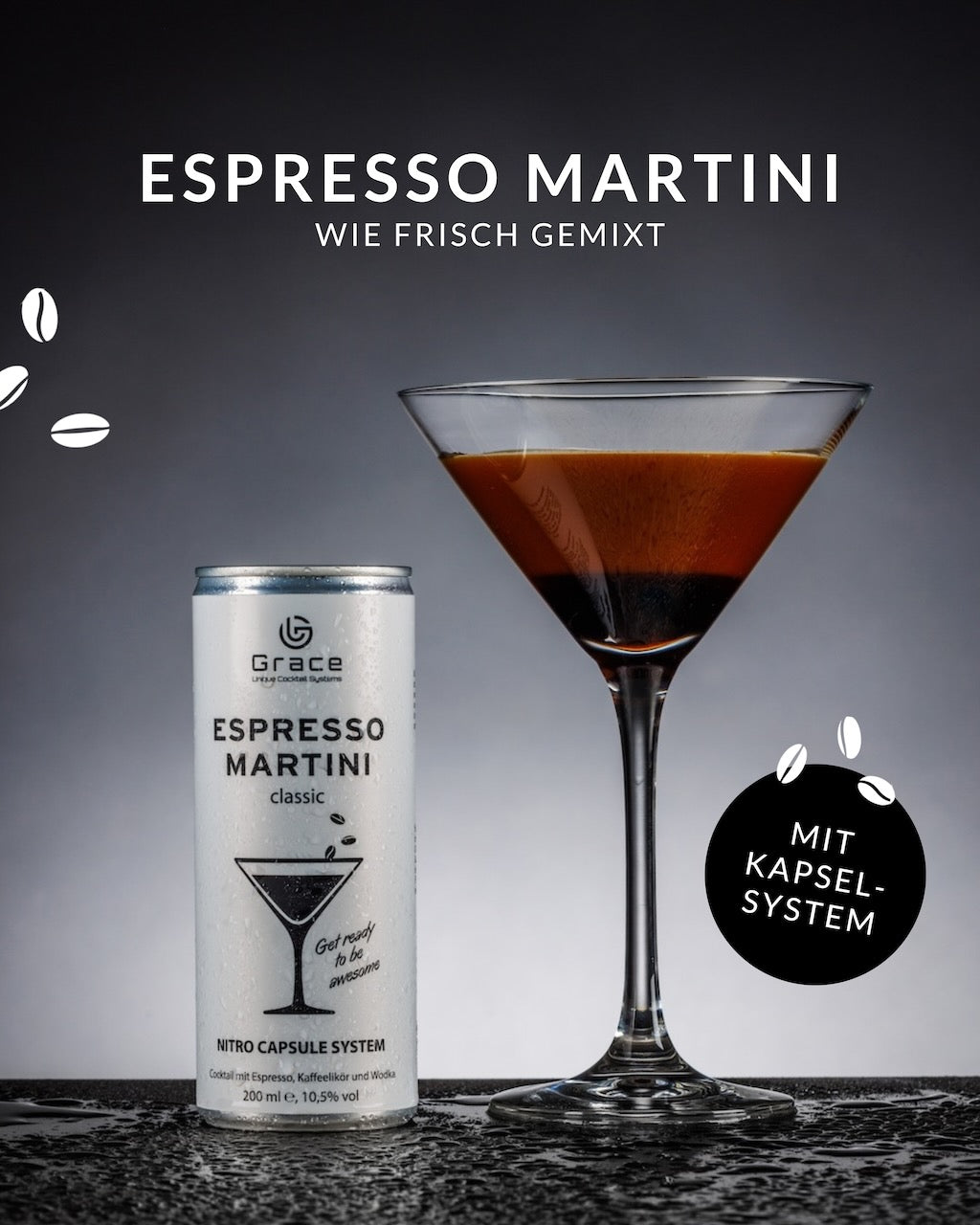Erlebe den unwiderstehlichen Geschmack eines klassischen Espresso Martinis, ohne die Mühe des Mixens. Unser Kapselsystem sorgt für den perfekten Cocktail – jedes Mal wieder.