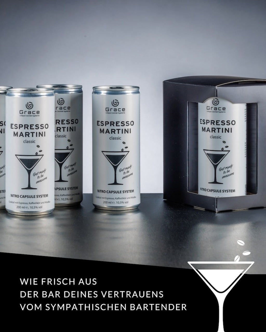 Gib dich nicht mit dem Gewöhnlichen zufrieden. Unser Espresso Martini in der Dose mit innovativer Stickstoff-Technologie bietet dir ein erstklassiges Bar-Erlebnis, wo immer du bist. Premium-Zutaten, meisterhaft gemixt, versprechen dir einen unvergleichlichen Genussmoment.