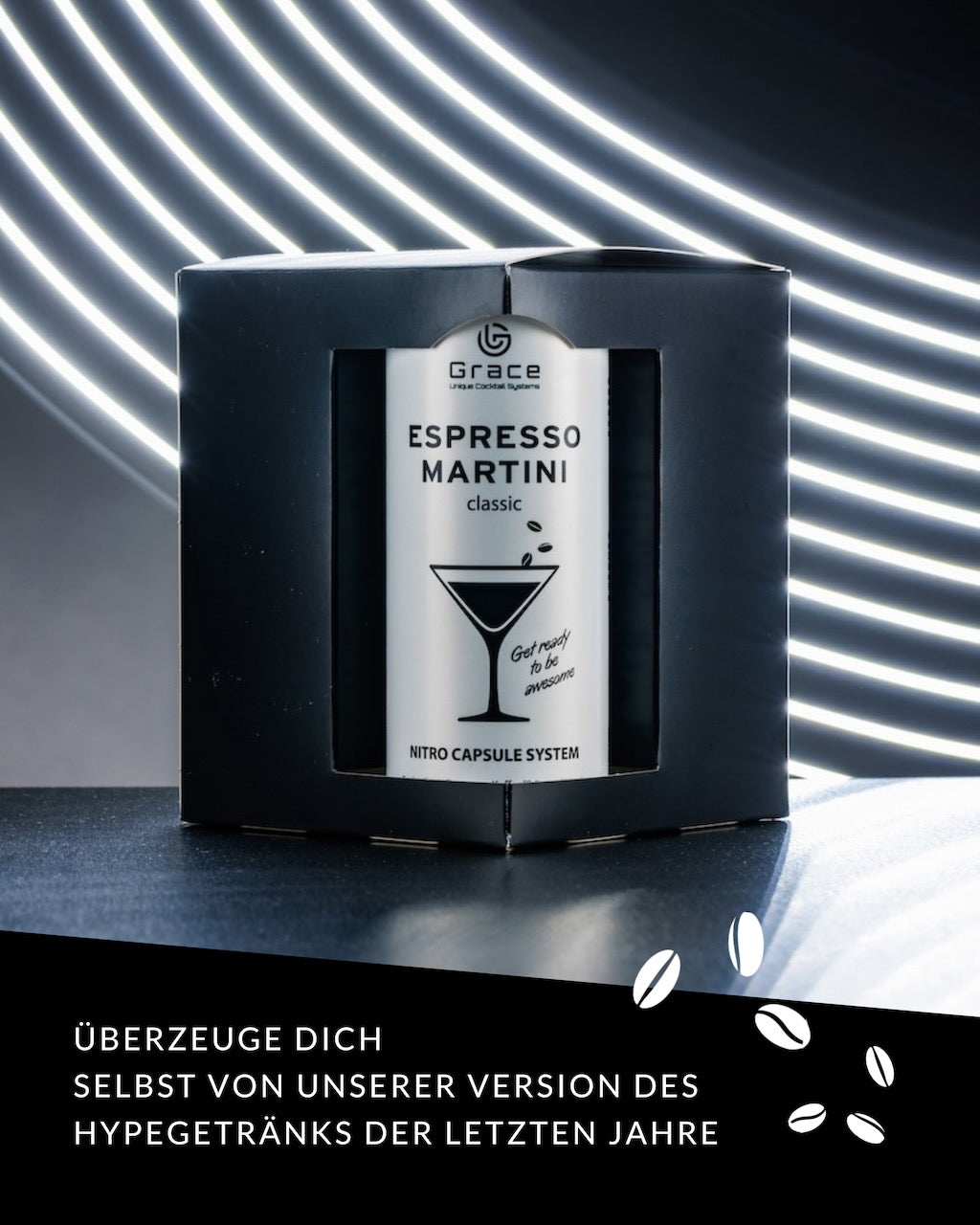 Genießen Sie Cocktailkunst, wie Sie sie noch nie zuvor erlebt haben. Unser Espresso Martini vereint klassischen Charme mit moderner Innovation. Kein Mixen, kein Aufwand, nur eleganter Genuss.